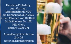 Dieser Vortrag findet am Donnerstag, den 30.04.2026 um 19:00 Uhr in den Räumen von dieBasis, Schleißheimer Str. 189 in München statt.